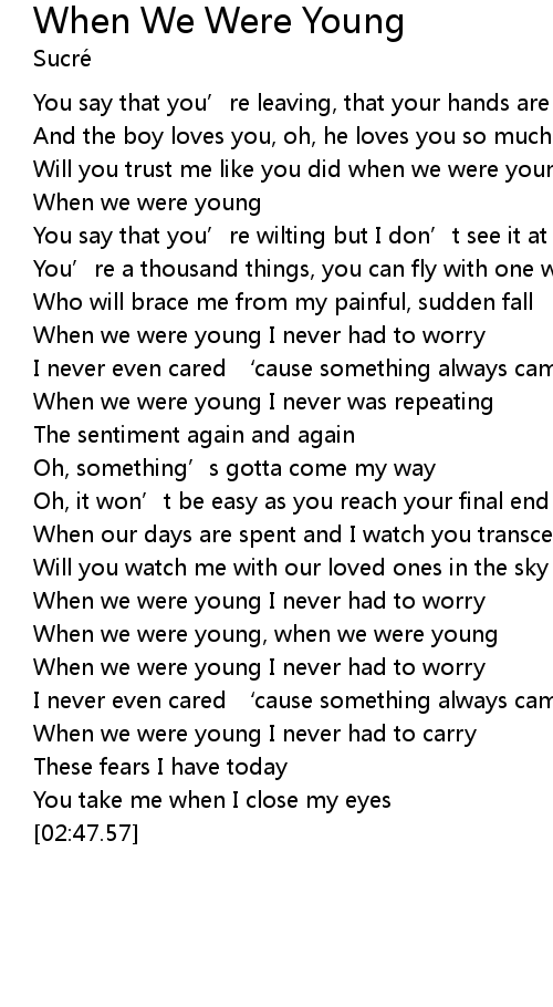 Your When We Were Young Lyrics picture are accessible in this site. When We Were Young Lyrics are a theme that is being searched for and liked by netizens today. You can Save the When We Were Young Lyrics here. Download all royalty-free picture.